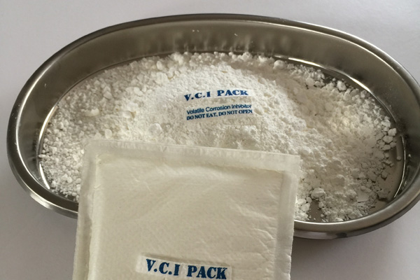 氣相防銹粉末多種特制的氣相緩蝕劑原料按一定配比均勻混合加工而成,具有水溶性,是一種新型的氣化性防銹材料。在密閉空間內(nèi),VCI經(jīng)氣化揮發(fā)到金屬的每個角落,吸附在金屬表面形成致密保護膜層從而起到防銹的作用